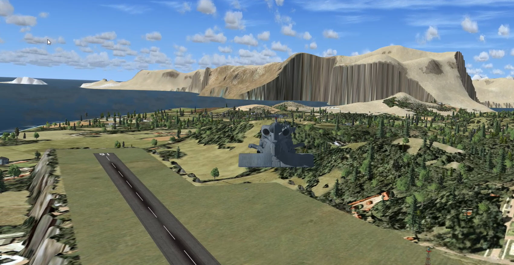 Nuuk includes a realistic mesh for the Nuuk area. Is you use default landclass that can lead to those edges in the vicinity because of the very rough vectors in the default scenery.