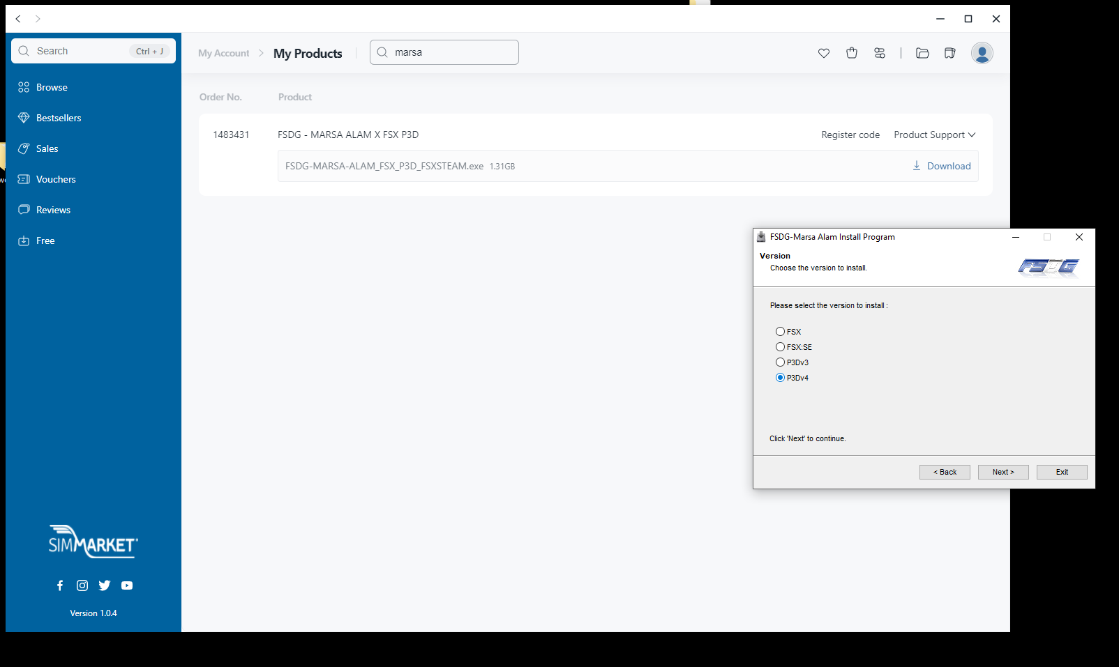 Did you managed to upload the right installer to Simmarket