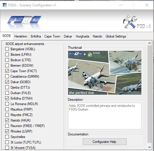 Der Airport taucht dort im Menu nicht auf (siehe Anhang). Der Scenery Conigurator und der SODE Link sind jeweils in der aktuellen Version installiert.