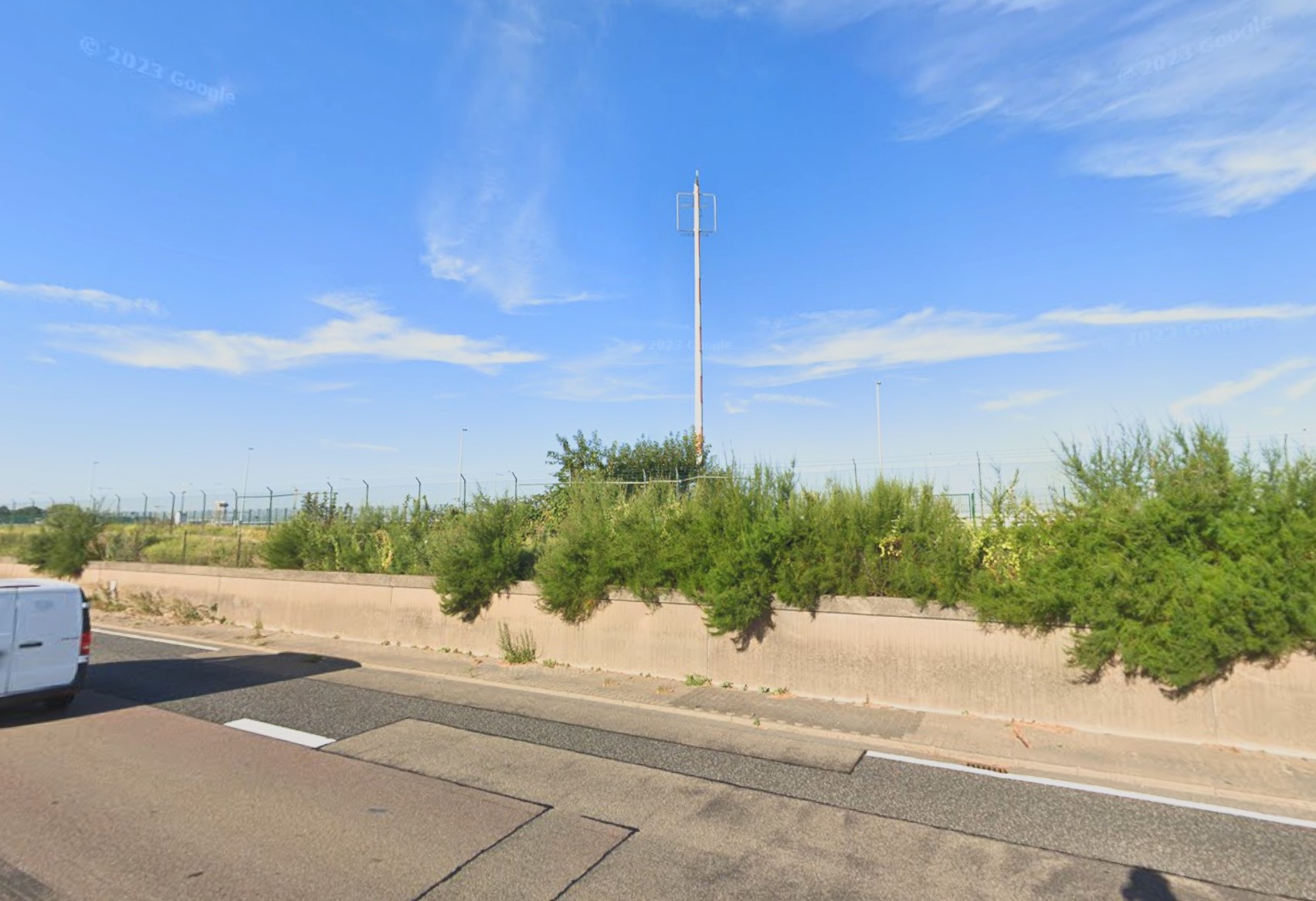 vor der Runway 25L steht dieser hohe Funkmast der lt. Google Maps keiner ist und da nicht hingehört und den Anflug stört.