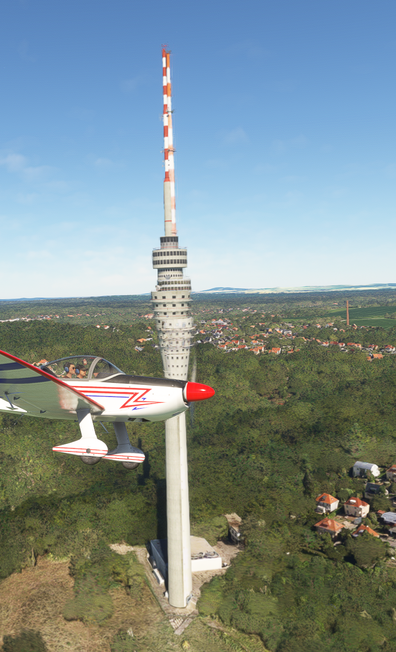Zunächst scheint er den Turm in der Entfernung mit der Vanilla Photogrametrie darzustellen. Dann, wenn man etwas näher kommt (2-5 km), läd er die Landmarks rein und stapelt den "Landmarks Turm" auf den "Vanilla Photogrametie Turm" drauf. Erst wenn ich ganz nah ran komme, legt er den "Landmarks Turm" nach unten und er überlappt sich mit dem "Vanilla Photogrametie Turm". Wenn ich dann vorbei fliege, stapelt er (nach 2-5 km) wieder den "Landmarks Turm" auf den "Vanilla Photogrametie Turm" und das bleibt dann so, bis ich wieder ganz nah ran fliege.