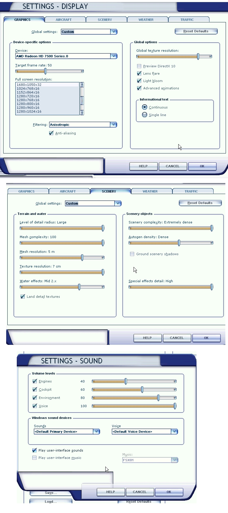 Thank you for getting back to me. Please note I am new to Flight Simulator on Steam. I will include a couple of screen shots to prove my settings are per your manual instructions (see file named, fsxSettingsPerManual.jpg).