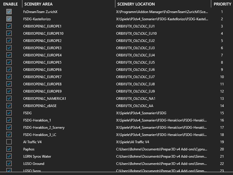 Die ORBX Einträge sollten unterhalb aller Airport Areas sein. Am besten Heraklion nochmals neu installieren, dann sollte es oben angeordnet sein und das Problem verschwinden.