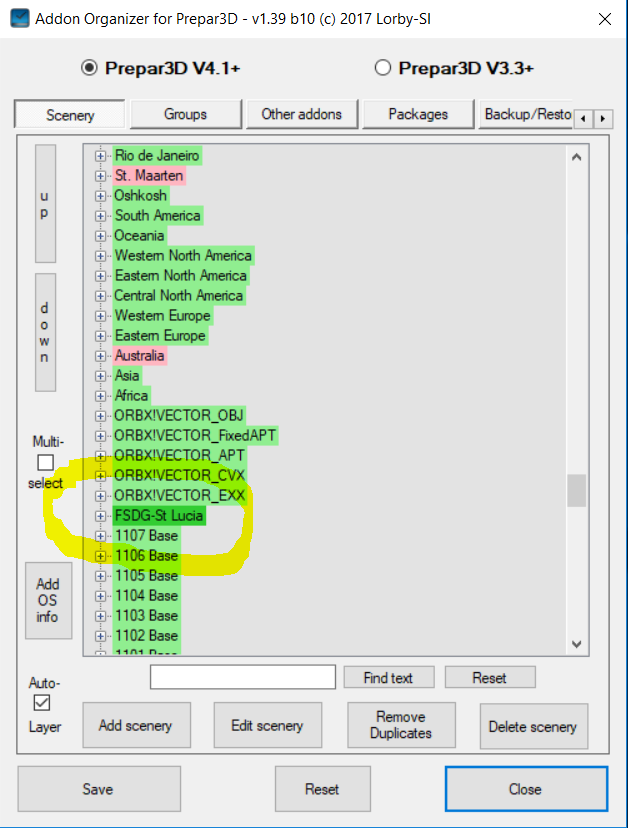 Using the Lorby-SI AddonOrganizer_P3D_V4, I tried to move the addon lower and lower down the scenery library (in case of Lorbys tool there is visible and adjustable the mix of both addons and regular scenery library).