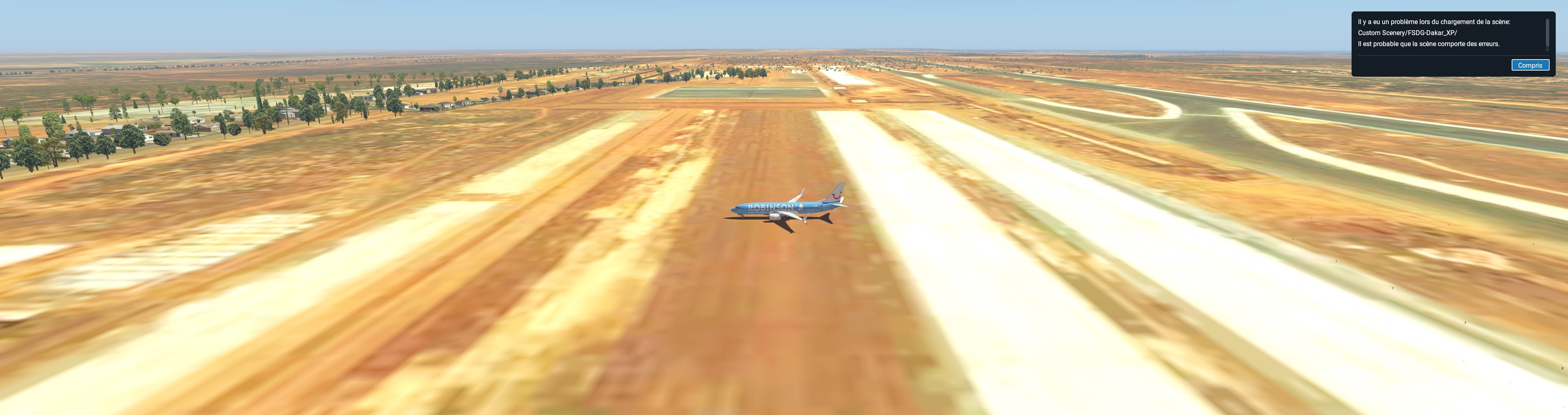 It is in my X-plane/Customer Scenery folder. It shows up FSDG-Dakar_XP. There is no folder duplicate within that folder. Looks fine. Even shows up in Scenery.ini at the top fine. When loading I see runway with lights all over grass and palm trees. I do have an error at the top right message from xplane stating scenery did not load correctly.