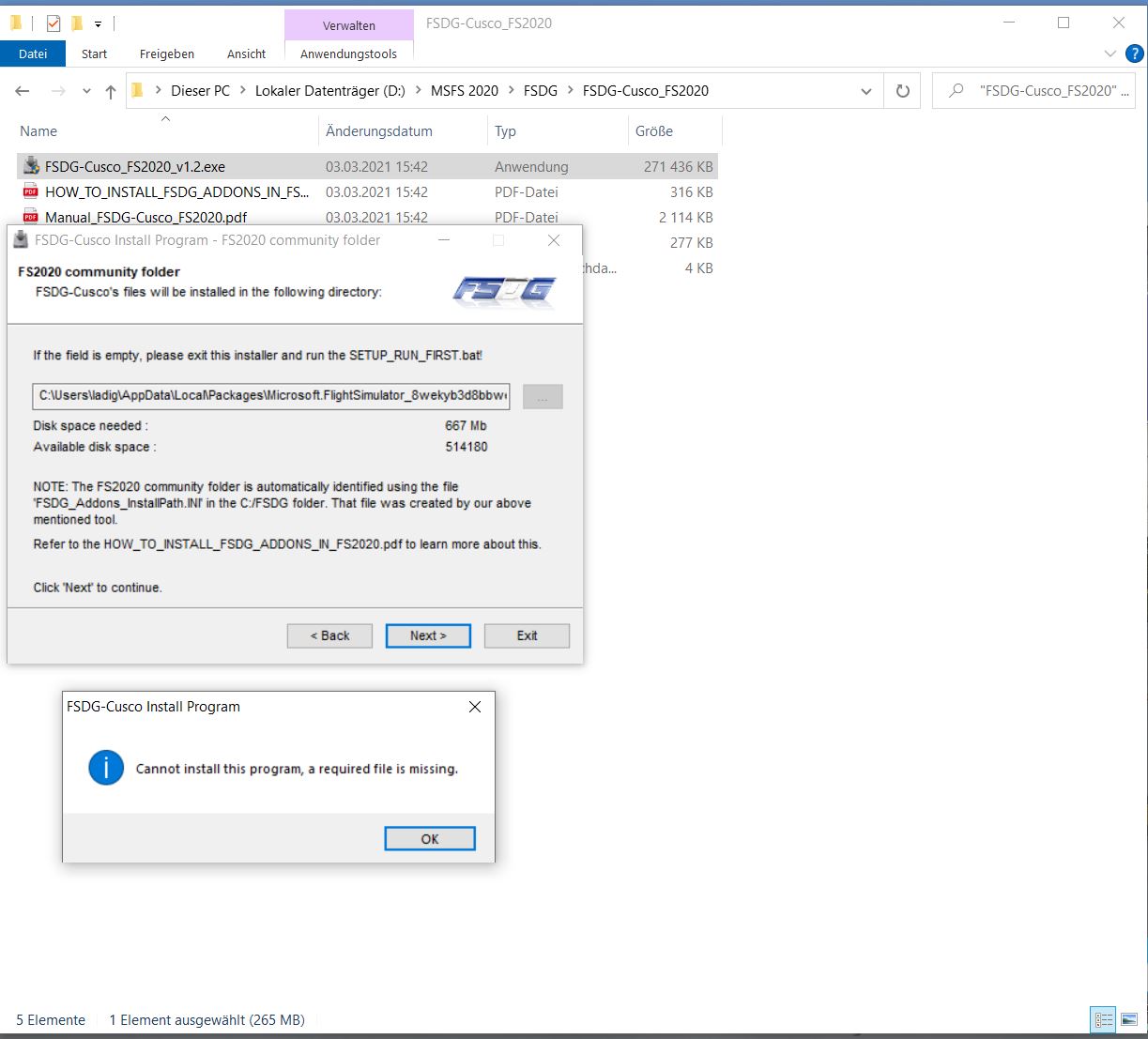 It should create a file called FSDG_Addons_InstallPath.INI in C:\FSDG