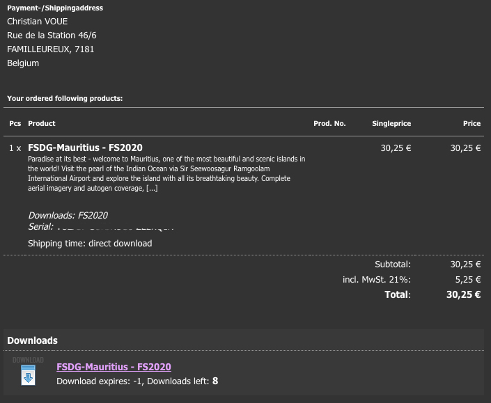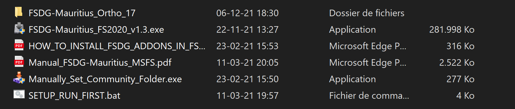 I just reinstalled everything after downloading again the FSDG-Mauritius_FS2020.zip file again.
