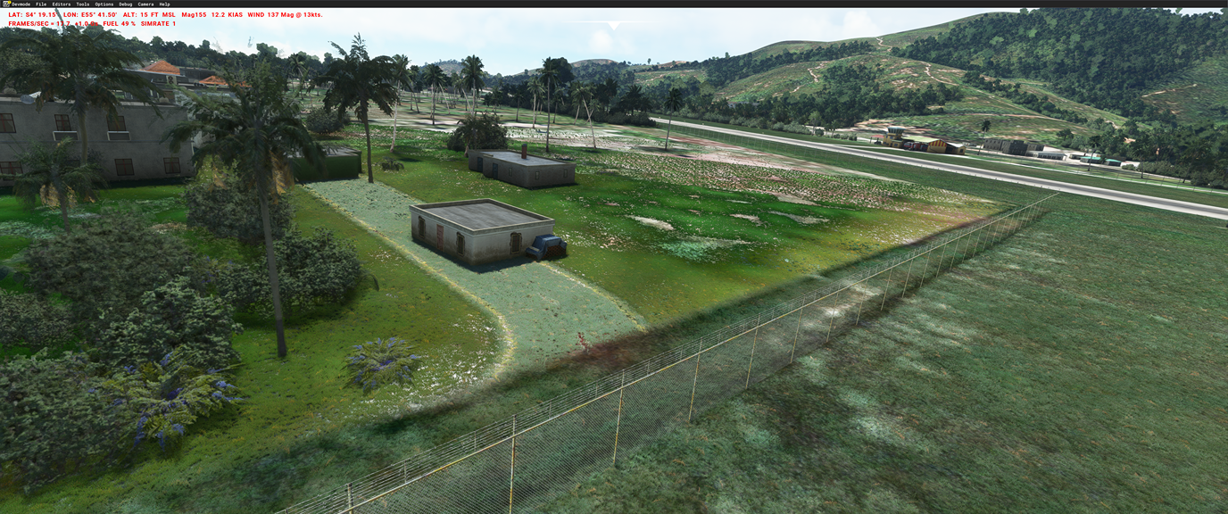 - many missing objects compared to the old FSX/P3D version (which is more detailed in many occasions). E.g. plane wreckage at the end of the airstrip at Marie-Louise is missing in the MSFS version