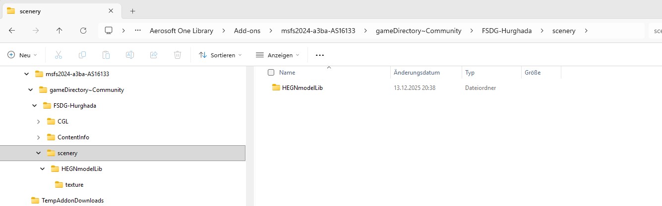 Die Scenery wird unvollständig installiert. Es fehlt der "HEGNscenery" Ordner