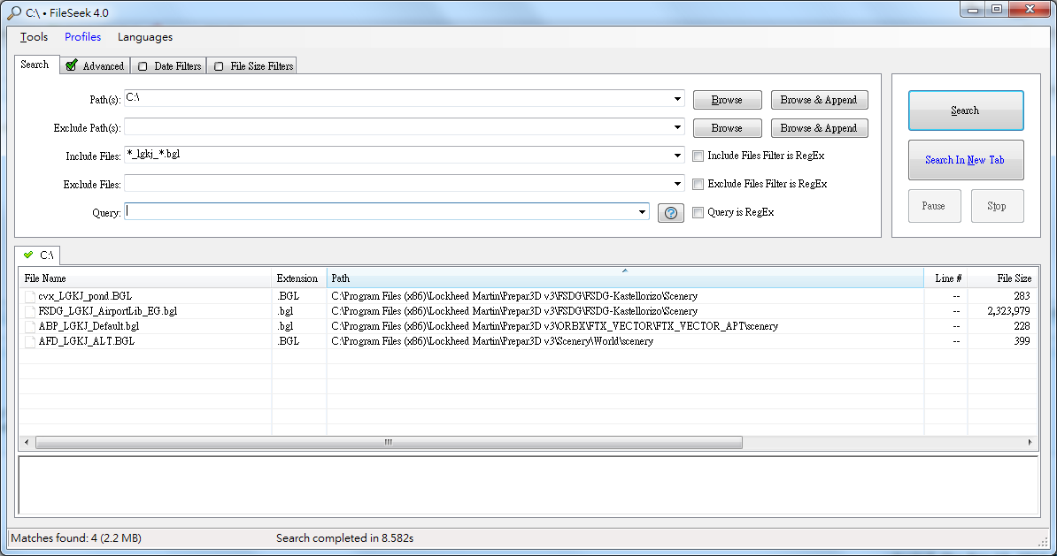 if you want you could also run a search for *LGKJ* as well, so we get the complete list of all LGKJ files in your P3D installation.