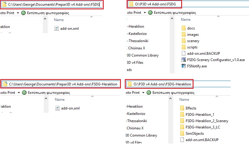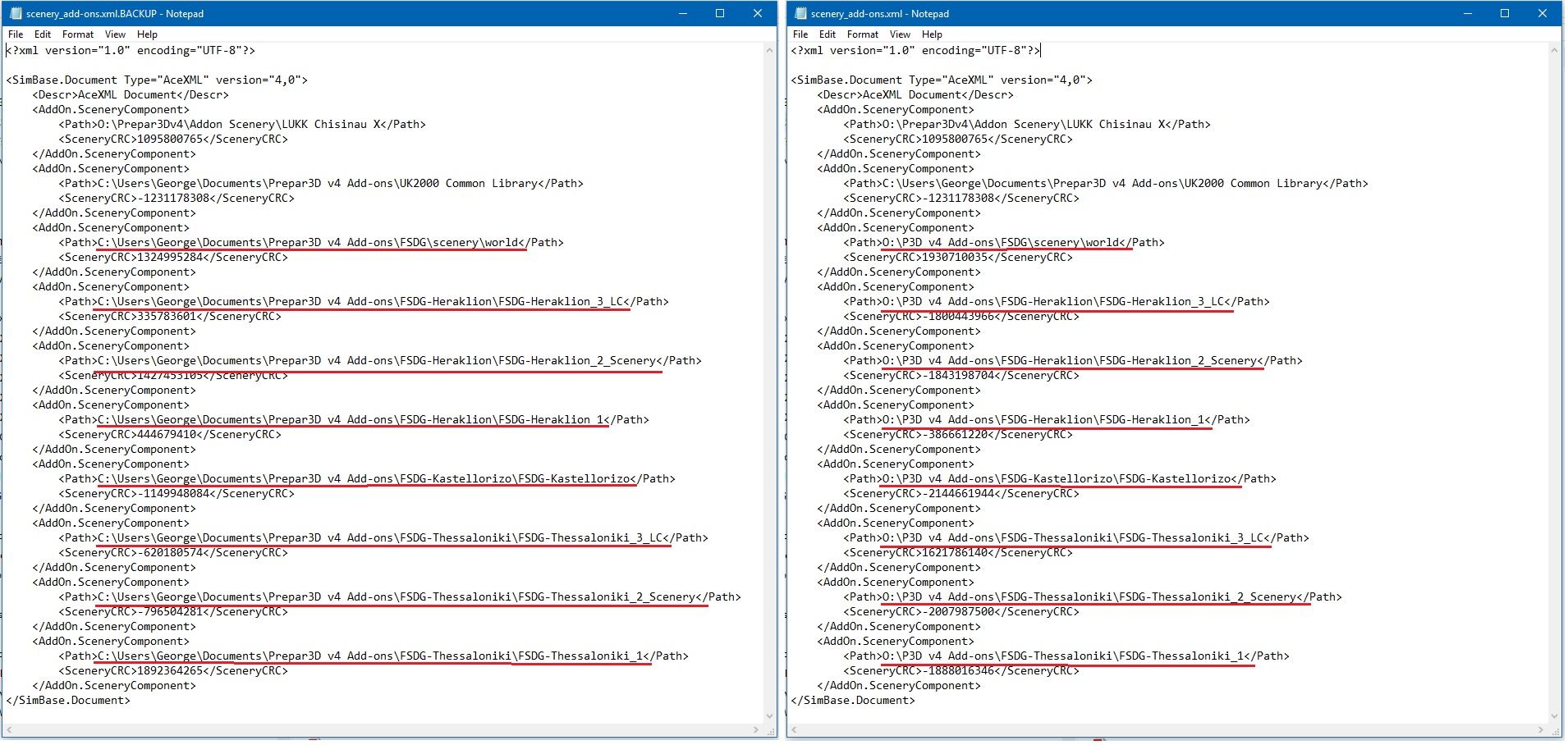 Step 5: Edit the "add-on.xml" in each FSDG folder by replacing the <path> line, as shown in the two following images (FSDG and Heraklion respectively). The process is the same for any scenery...