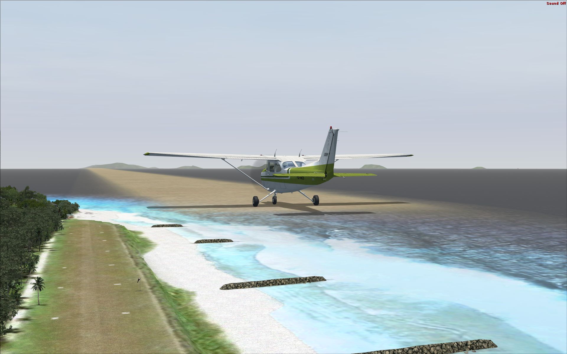 At these airports the airplane is on a semi-transparent runway 10 feet above the real runway. At FSSF the plane is 200 feet above the surface. You can see the pics