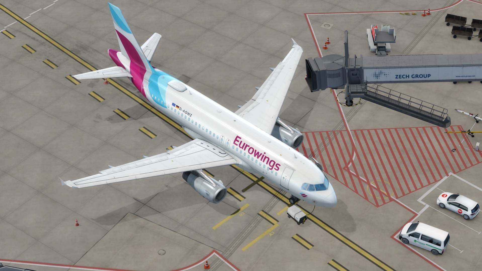 Auf dem Screenshot sieht soweit alles korrekt aus. Die rot gestreiften Bereiche markieren am Boden immer den Schwenkbereich der Jetways, damit dort keine Fahrzeuge abgestellt werden.