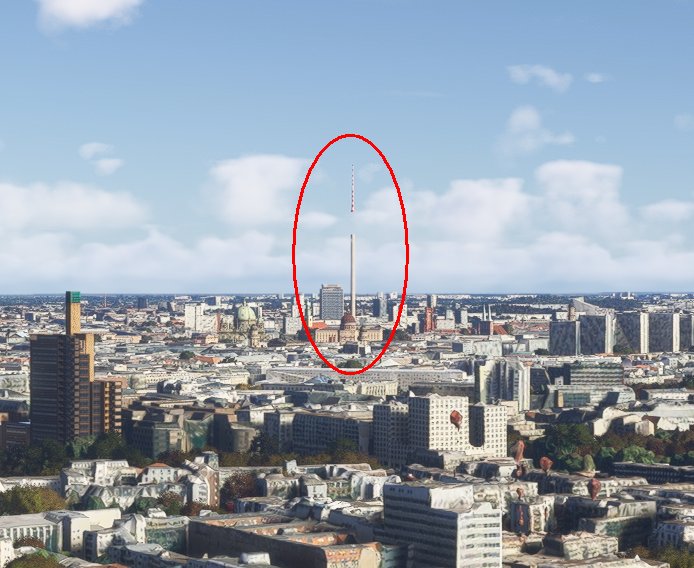 beim LOG Berlin/Brandenburg gibt es ein Problem mit dem LOD des Fernsehturms. Auch wenn man recht nah dran ist fehlt die 'Kugel' oder andere Teile des Bauwerks. Der Turm müsste auch von weit weg als markantes Gebäude komplett sichtbar sein.